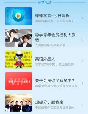 4、“导学活动”是导学号针对用户关切的常见问题解答,新功能介绍及公司推出各种活动集中展示区。
