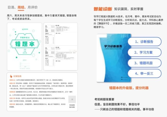 在整个学习过程中,导学号 AI 自习室注重培养孩子自主学习的习惯。让孩子像考试一样独立完成作业,做完后老师会及时批改,将错题一键加入错题本。每周会为孩子生成错题本,根据记忆曲线帮助孩子巩固知识。