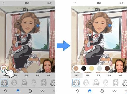 3、漫画就生成啦!在“美妆”里可以变成明星的脸型,各种时尚发型,让你看到百变的美。