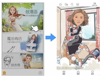 1、首先打开魔漫相机,进入 做漫画 模块。再点击“美妆”,进入美妆界面。
