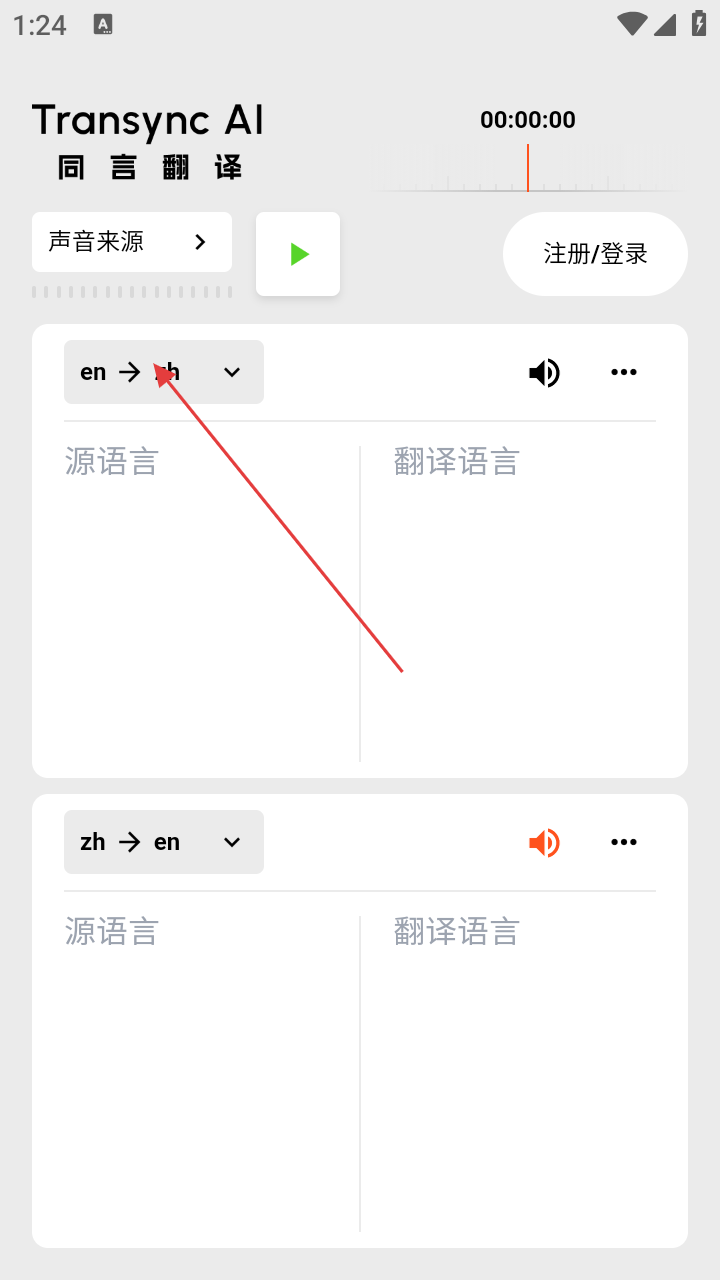 2、在翻译界面,点击语言切换按钮,打开语言选择列表。