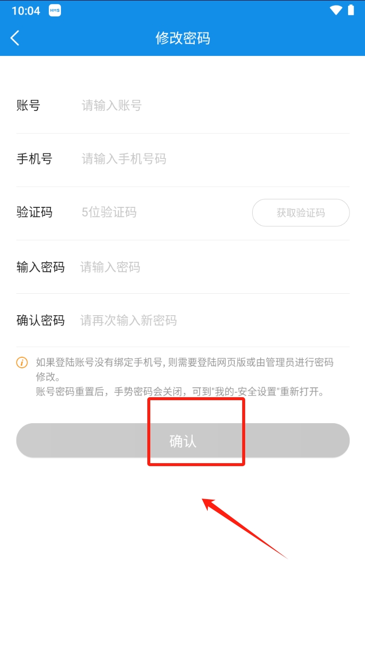 2、其次,输入验证信息并设置新密码。在修改密码页面,输入您的账号、手机号、验证码,并设置新密码,然后点击“确认”按钮完成密码重置。