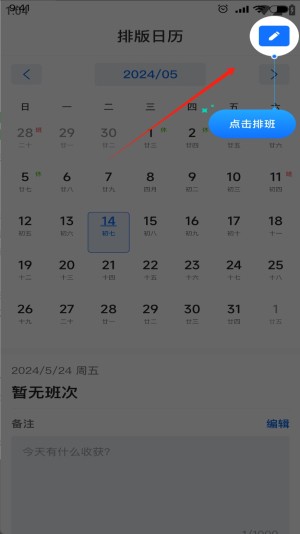 1、首先,打开排班日历应用,点击右上角的“编辑”按钮,选择需要编辑的日期。