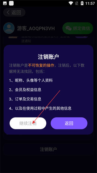 4、若确认注销,点击“继续注销”完成操作;若放弃,点击“返回”回到个人中心页面。