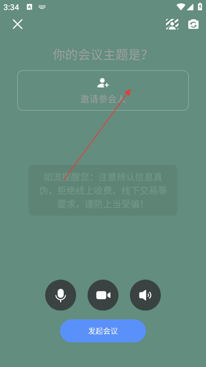 3、在会议发起页面,点击【邀请参会人】进入选择联系人页面。