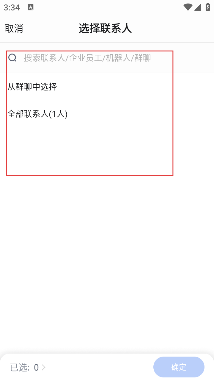 4、在选择联系人页面,可搜索联系人或从群聊、全部联系人中选择参会人员,选择完成后点击【确定】,再点击【发起会议】即可发起会议。