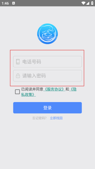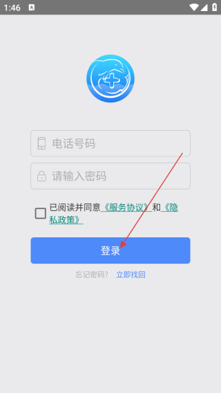 2、进入登录界面输入手机号和密码。