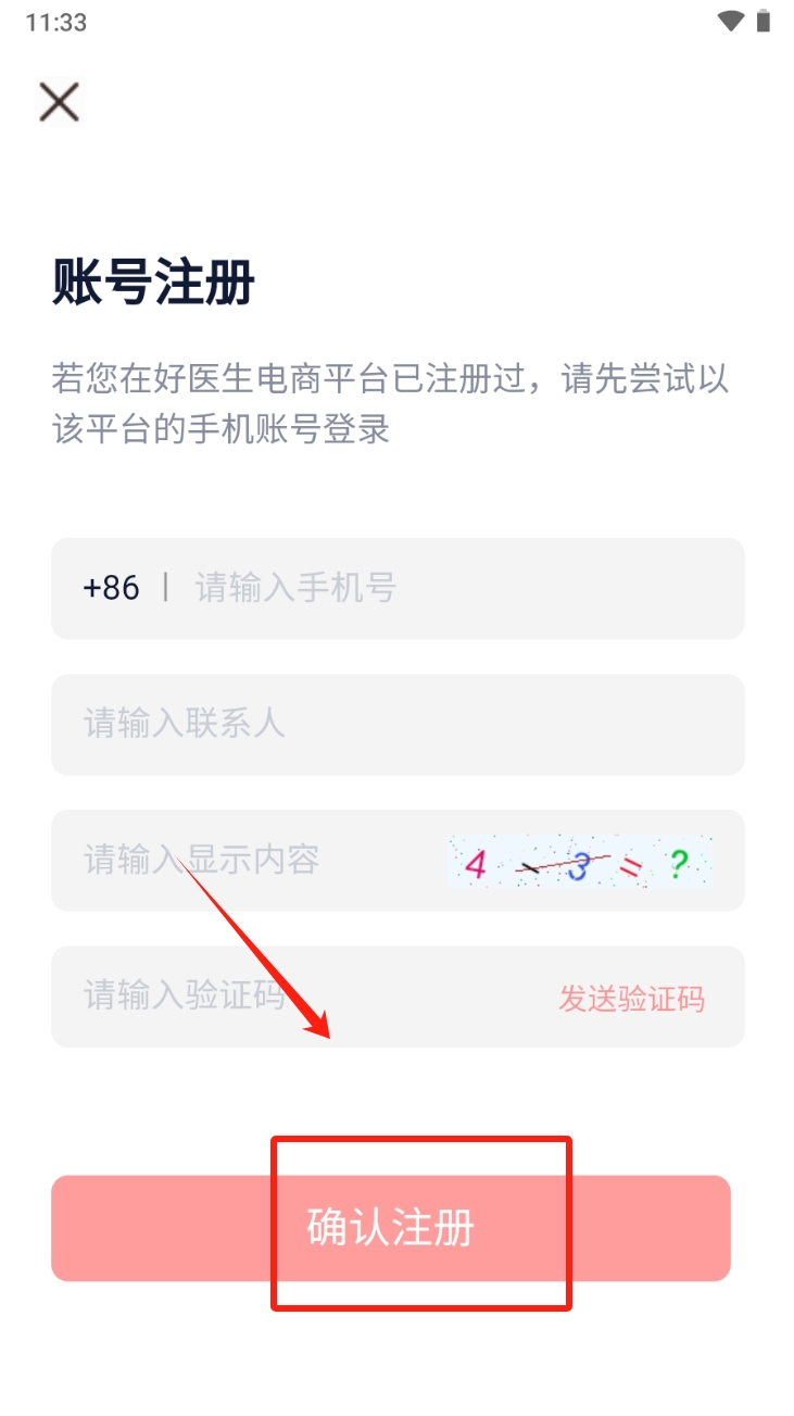3、填写注册信息,包括手机号、联系人和验证码,点击“确认注册”完成注册。
