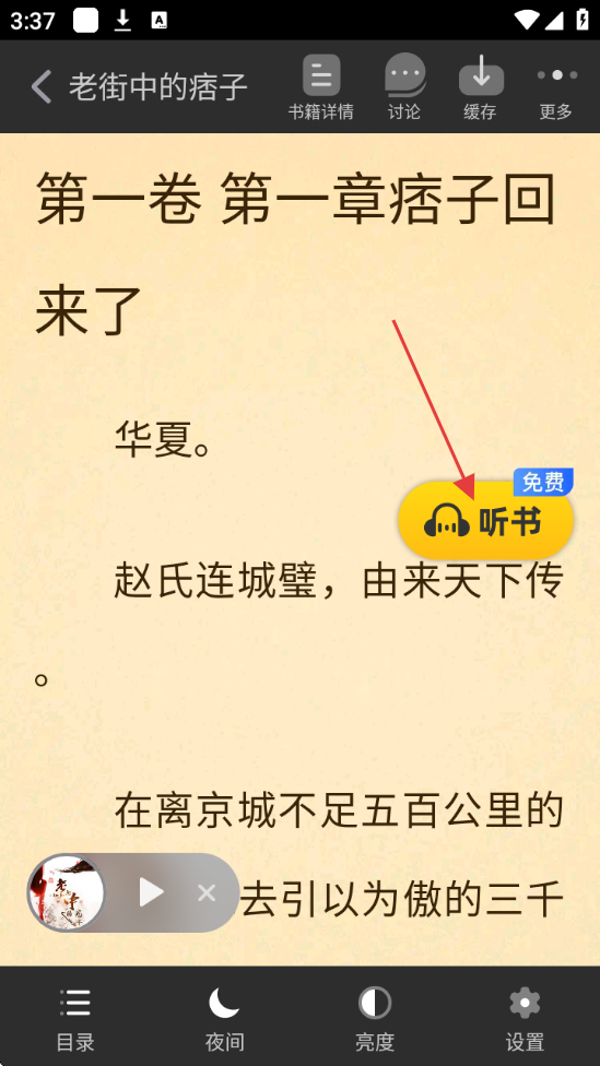 2、在书籍阅读页面,点击【听书】按钮,可进入听书模式。