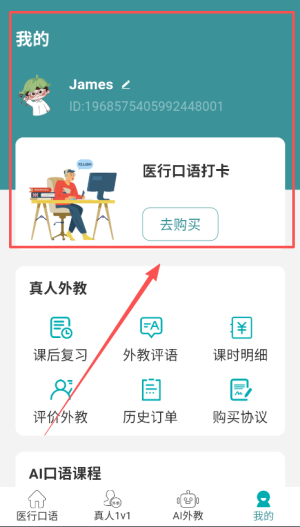 3、接下来选择英语口语训练模块,并根据自己的需求进行练习,通过AI外教和真人外教进行针对性训练。