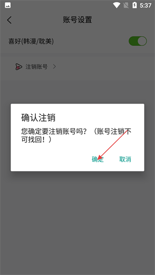 4、在确认注销弹窗中,点击【确定】即可完成账号注销操作,账号注销后不可找回。