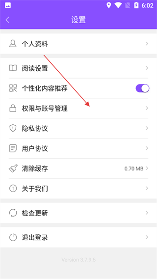 3、在设置界面,点击【权限与账号管理】选项,进入权限与账号管理页面。