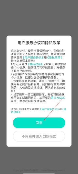 1、打开应用查看协议点击同意。