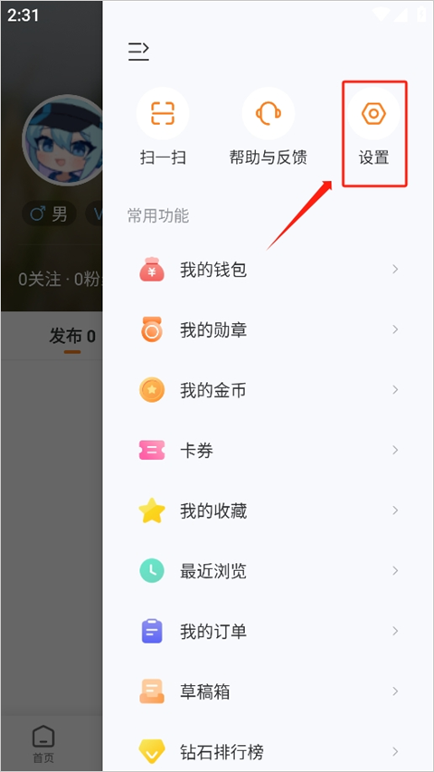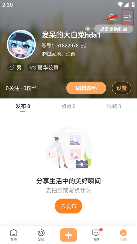 1、在“我的”页面选择右上角这个。