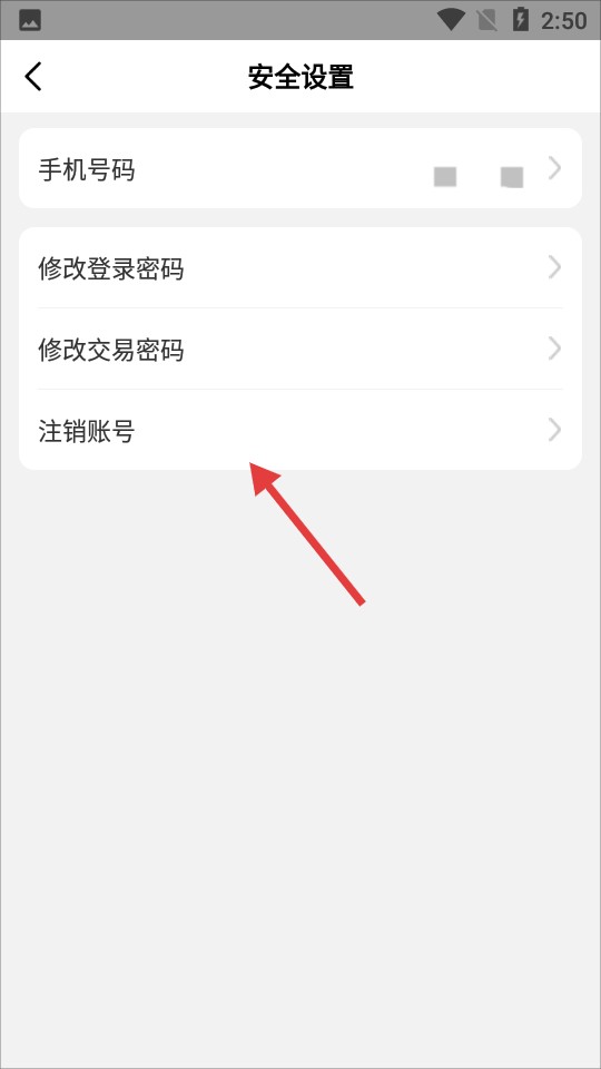 3、在安全设置页面点击【注销账号】,进入账号注销申请界面。