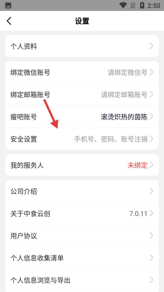 2、在设置界面点击【安全设置】,进入安全设置页面。