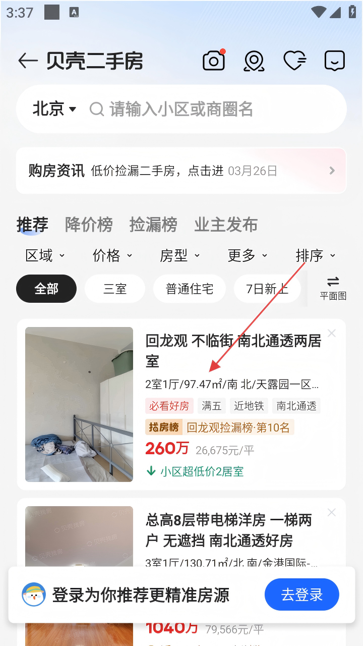 2、进入贝壳二手房页面后,找到心仪的房源并点击进入其详情页。