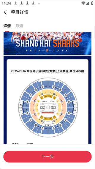 2、然后点击赛事票后进入详情界面中阅读相关票务信息,例如场馆座位价格