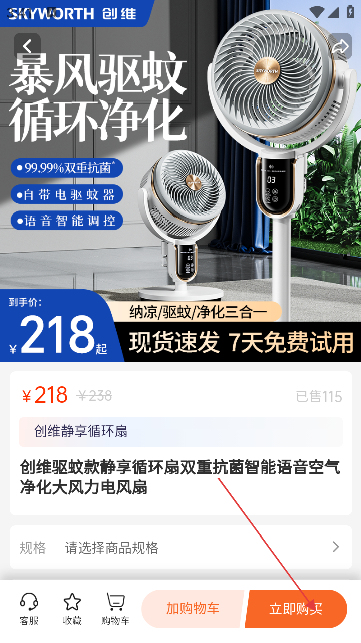 2、在详情页点击【立即购买】,进入规格选择页。