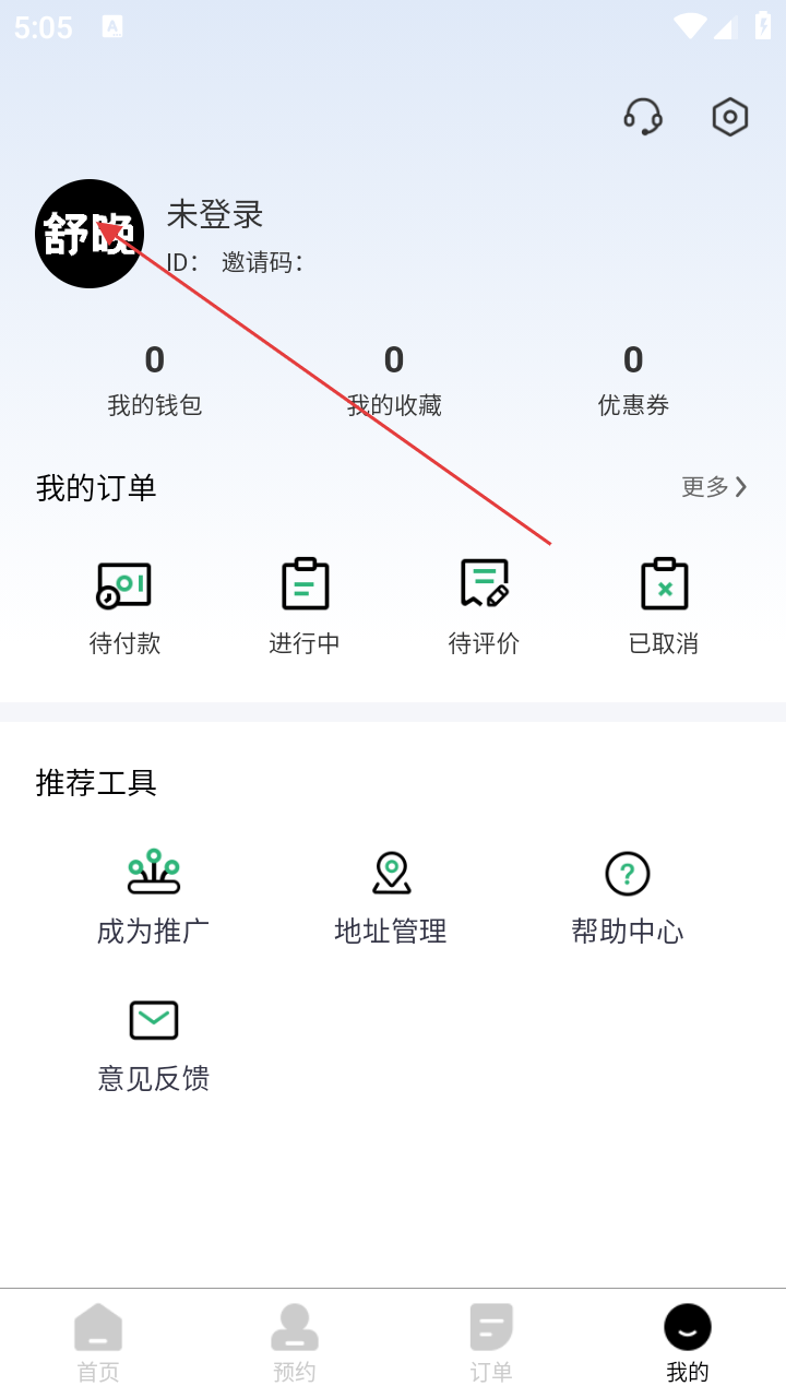 2、在个人页,点击头像进入登录流程。