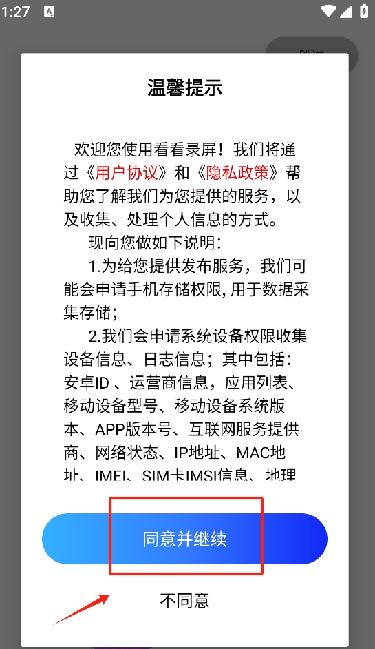 1、点击“同意并继续”按钮,表示已阅读并同意相关条款。