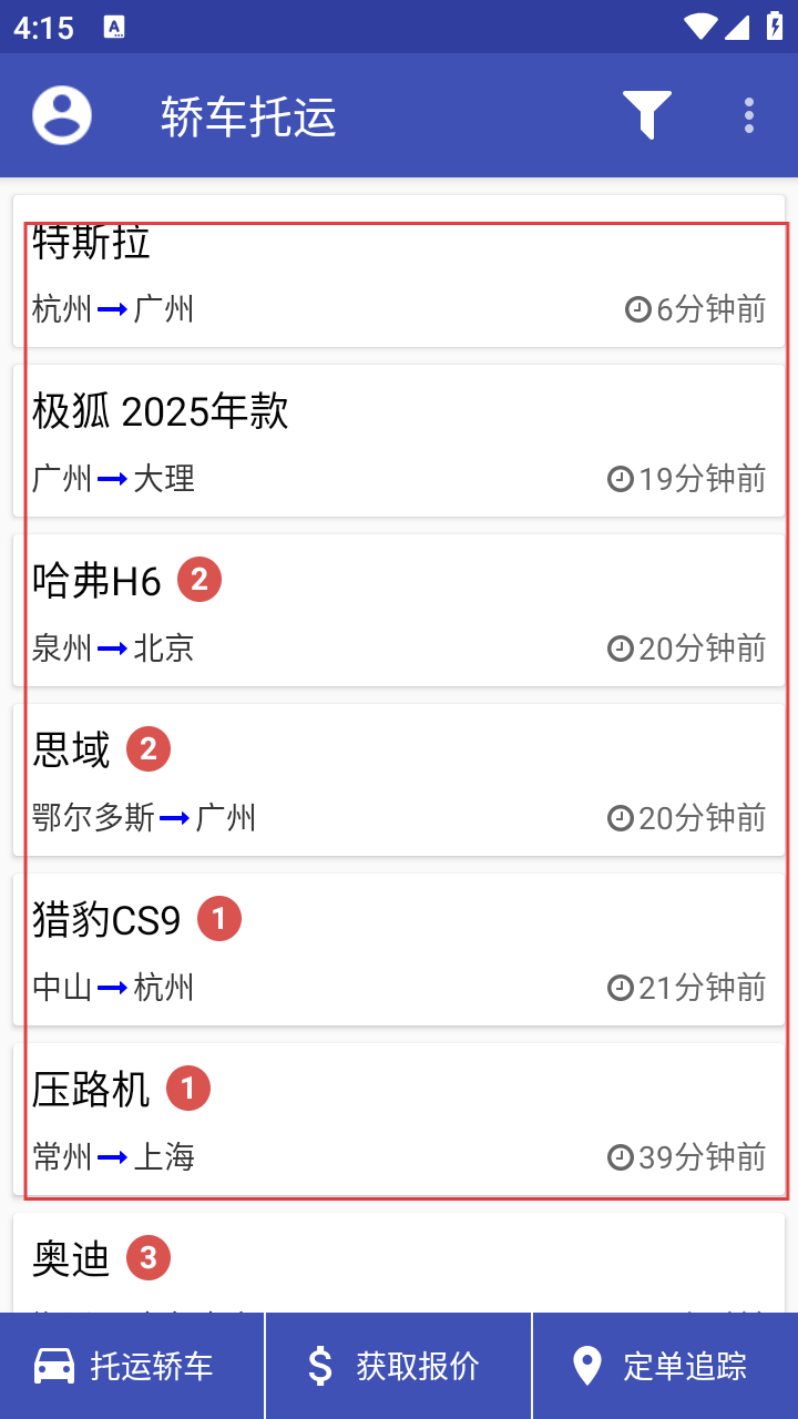 1、双端智能匹配引擎:车主发布需求后,系统自动推送给30公里内最优5家承运商,响应时间缩短80%。