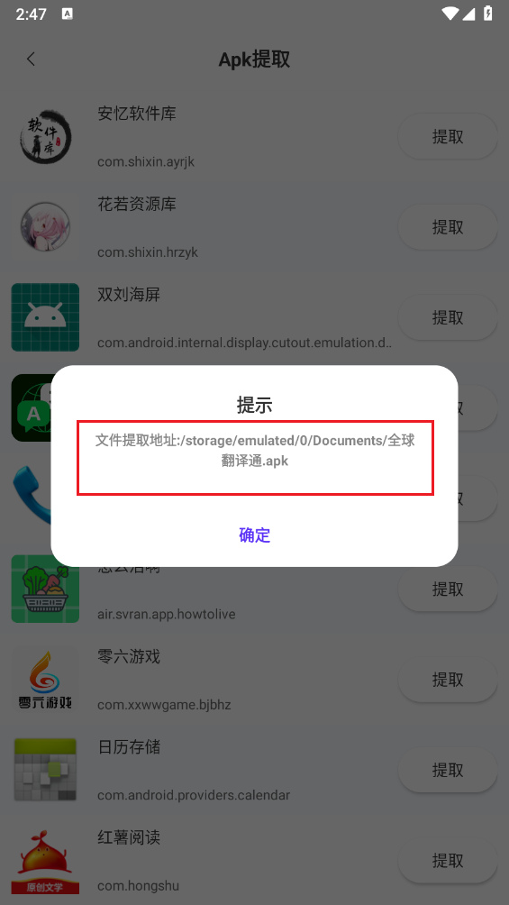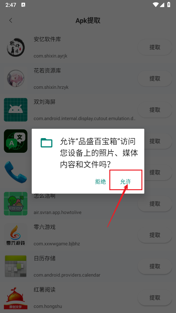 3、进入后点击所需提取的软件,点击右边的"提取"。