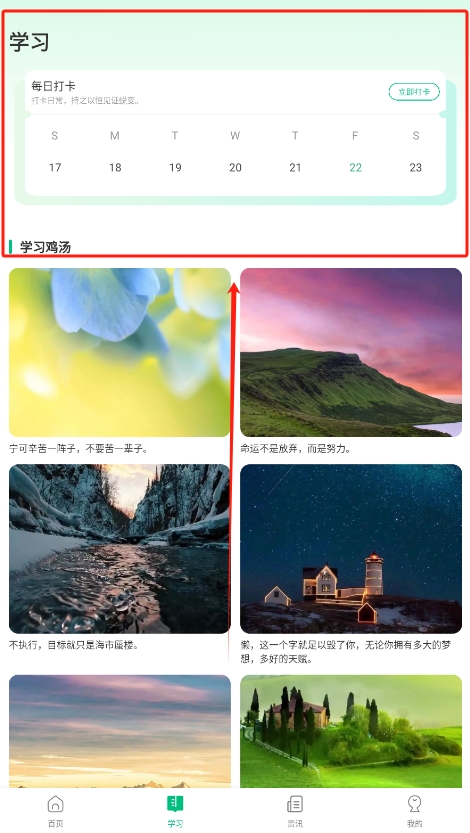 3、每天打卡记录学习进度,会自动保存用户的学习情况,同时也让他们在日常学习中获得成就感。