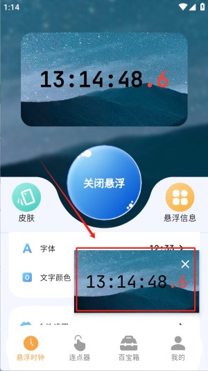 3、然后,若要关闭悬浮时钟,只需点击“关闭悬浮”按钮,悬浮时钟将不再显示。