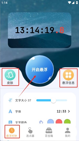 1、首先,打开悬浮时钟应用,点击“开启悬浮”按钮以启动悬浮时钟功能。