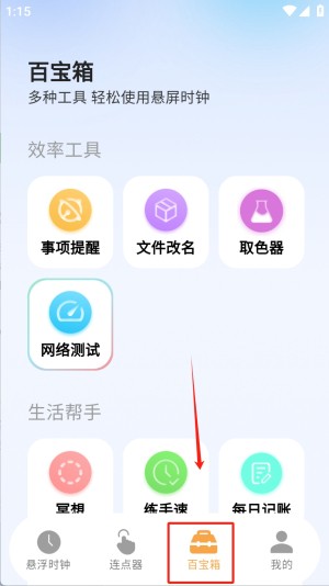 如何使用悬浮时钟和百宝箱功能?