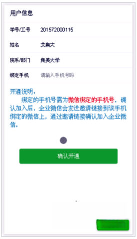 2、录入微信绑定的手机号码,确认无误后,点击“确认”(温馨提示:必须使用微信绑定的手机号码,以确保接收到通知消息和待办提醒)。
