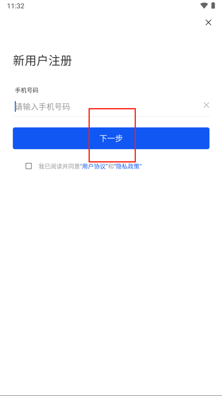 2、输入手机号码,点击“下一步”,继续注册操作。