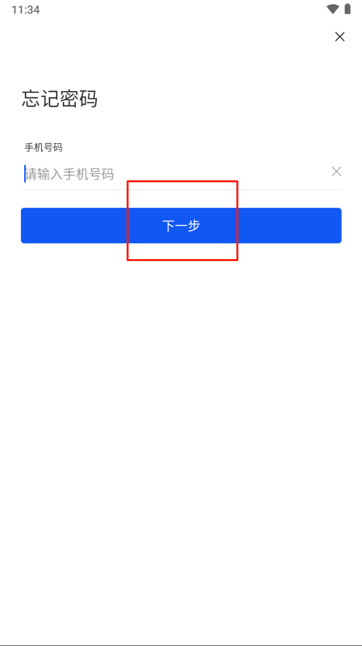 3、输入手机号码,点击“下一步”,进行密码重置。