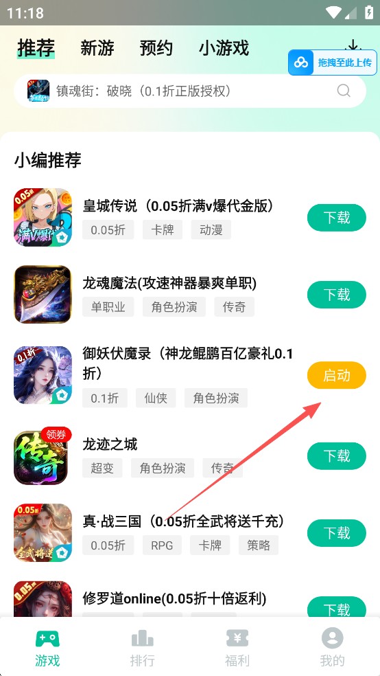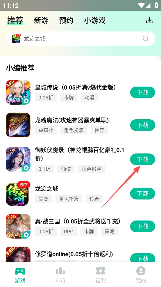 1、打开逍遥折扣盒子App,点击下载自己想要游玩的游戏