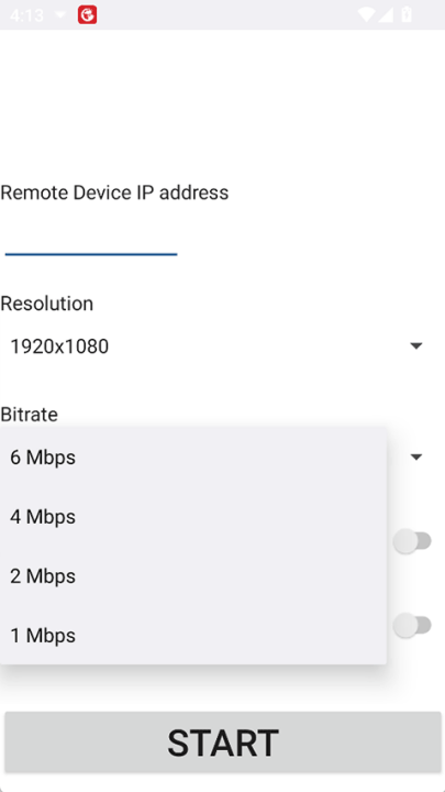 4、从下拉菜单中选择显示参数和比特率(1280x720 和 2Mbps 效果最佳)。