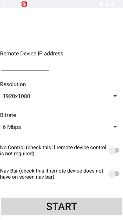 3、打开 scrcpy安卓版应用程序并输入要镜像的设备的 ip 地址。