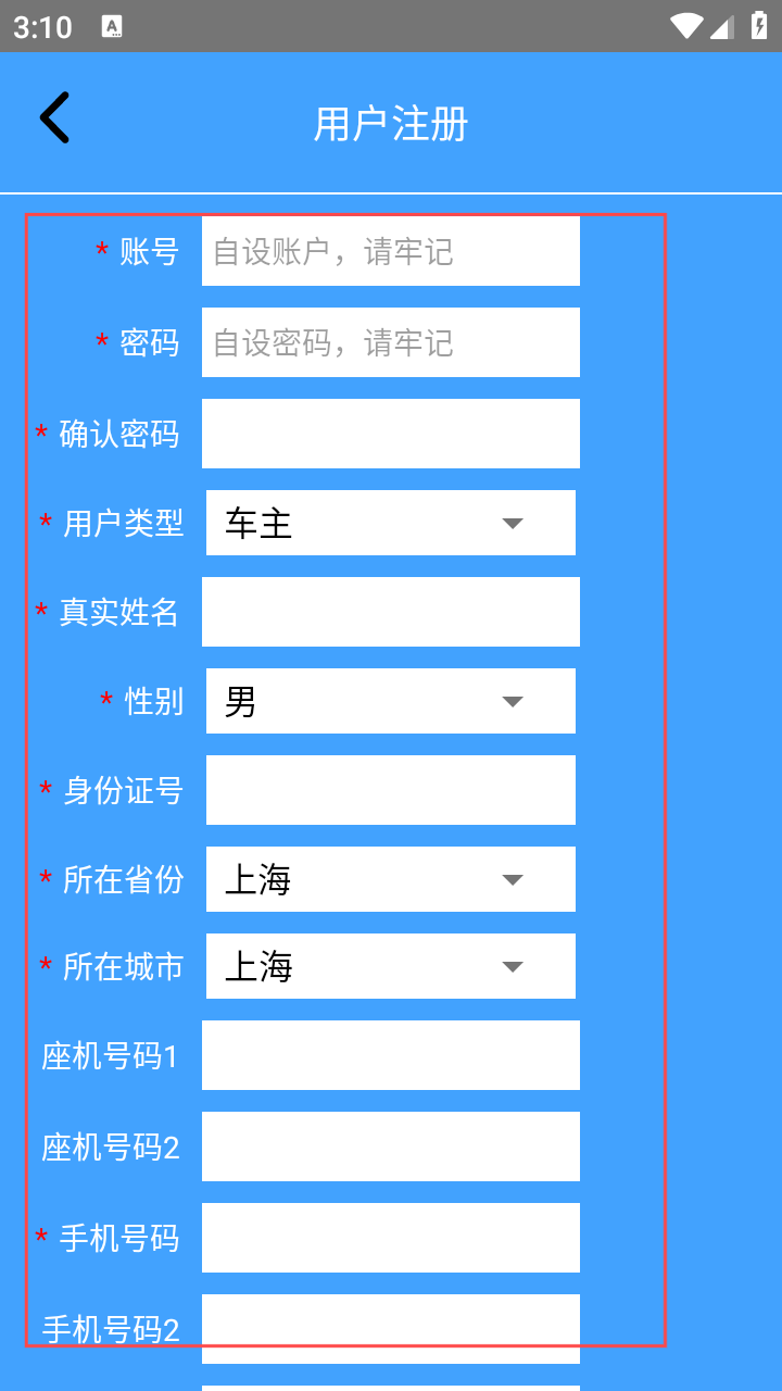 4、进入注册页,填写账号、密码、用户类型等信息,完成注册。