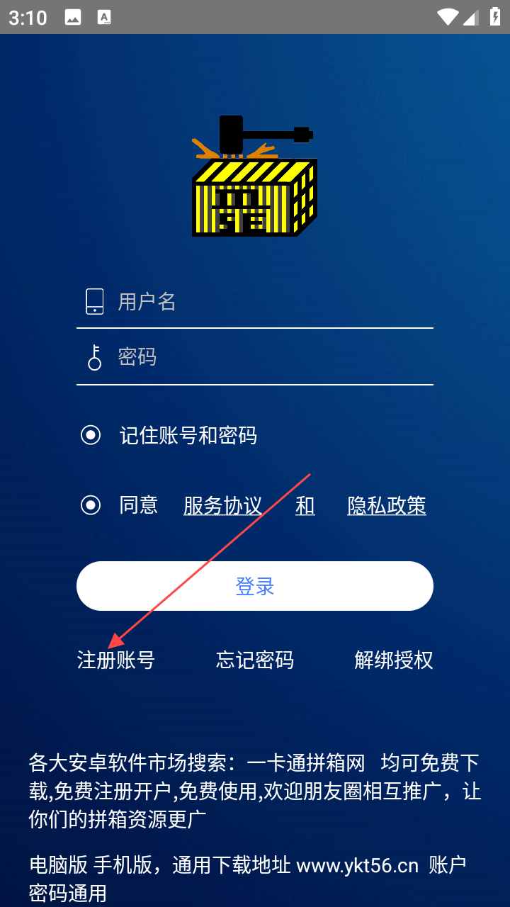 2、跳转至登录页,点【注册账号】,进入注册服务条款页。