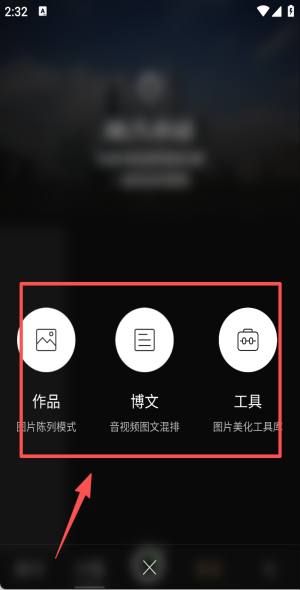 3、进入“作品”页,选“图片美化工具屋”编辑照片,再用图文混排陈列模式发布。