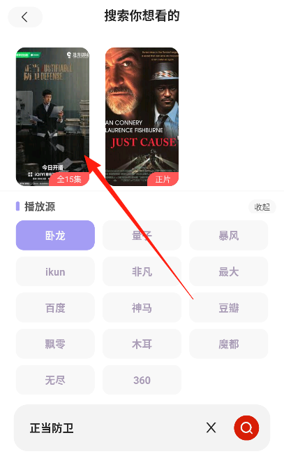 3、在搜索结果里找到想要观看的影片,接着点击进入播放页面。