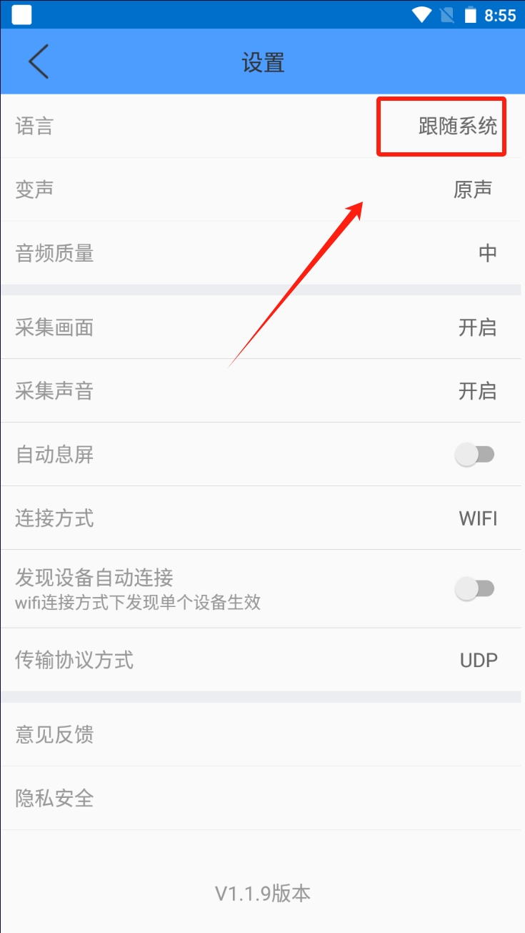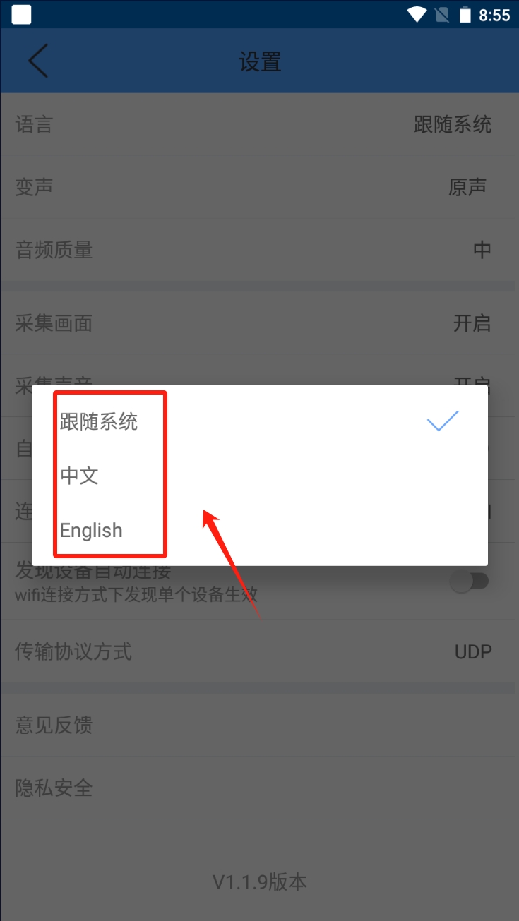 3、确认语言设置、在语言设置的下拉菜单中,选择“跟随系统”确保软件语言与设备系统语言一致。