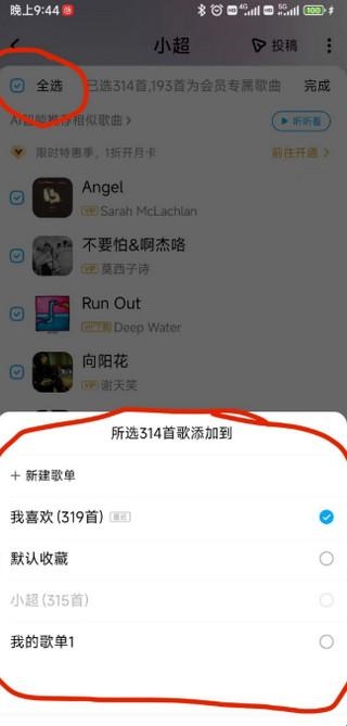 4、全选歌曲,添加到我的喜欢,或者自己创一个歌单。