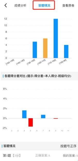 1)成绩分布:作业报告显示得分、班级均分,班级成绩分布及我所在的区域;每道题与班级的得分差情况。