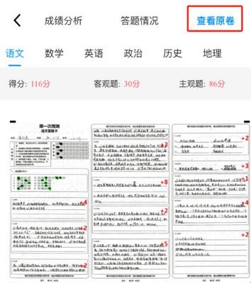 【查看原卷】:点击可查看个人整张扫描的试卷;多页试卷可以通过滑动查看。