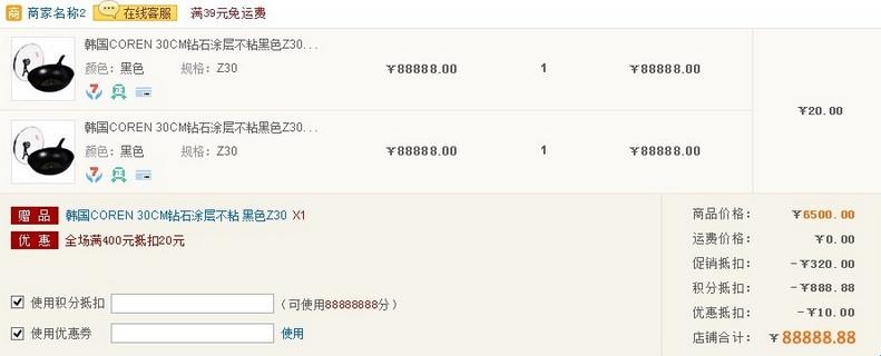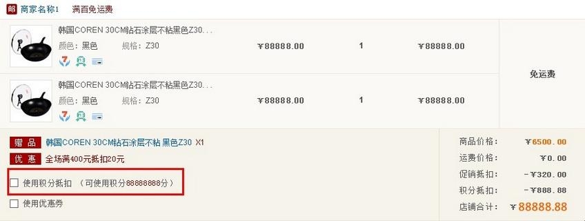 a)首先每个店铺的商品有最多可使用的积分数,您可以在确认订单页查看
