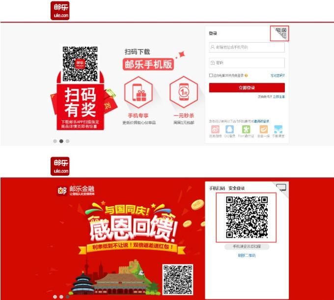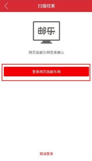 3、在电脑上打开邮乐登录页面,点击右上角的二维码。