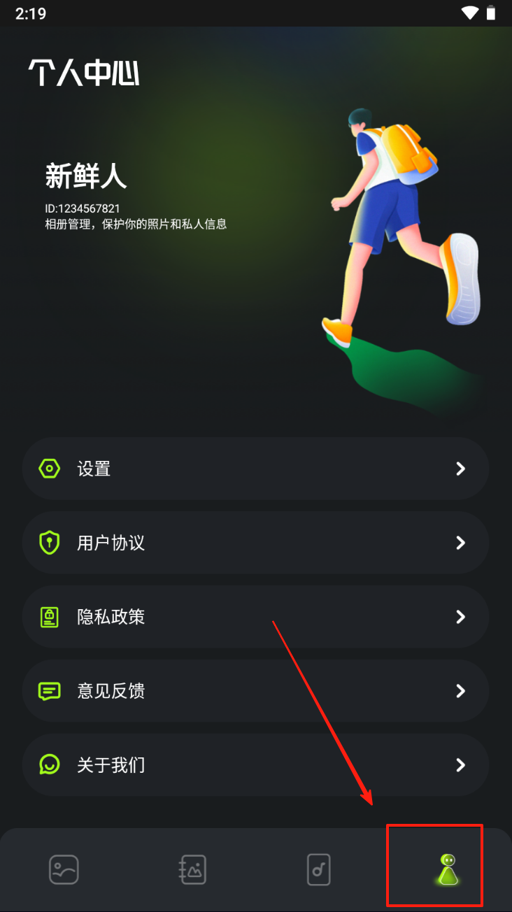 4、在个人中心页面,点击铃铛图标查看系统通知和更新信息。