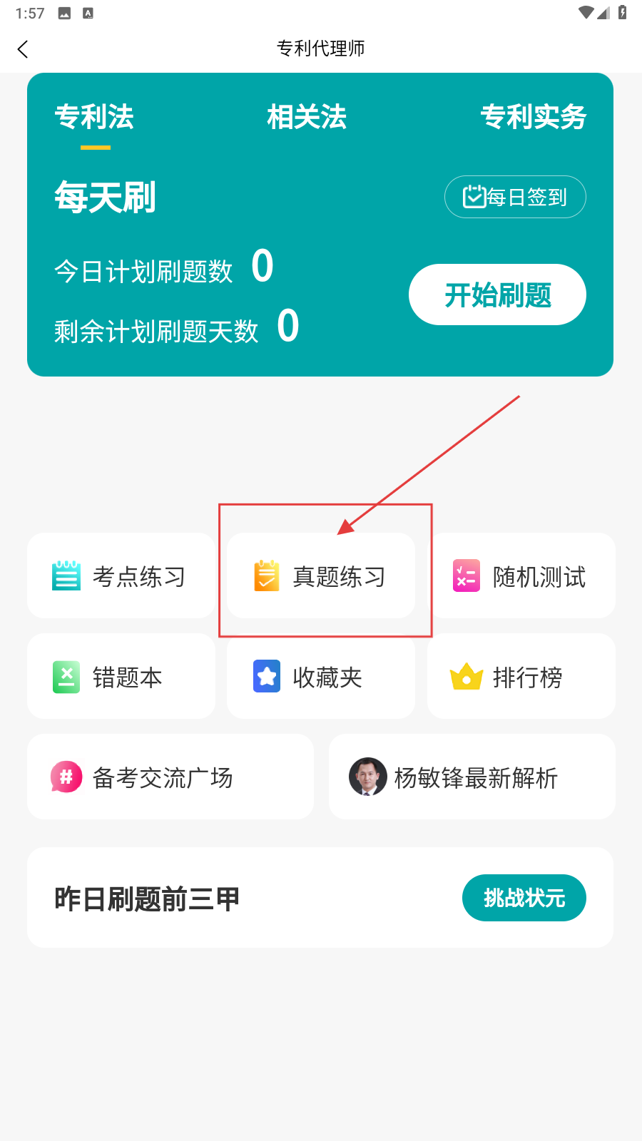 2、进入界面后点击【真题练习】。