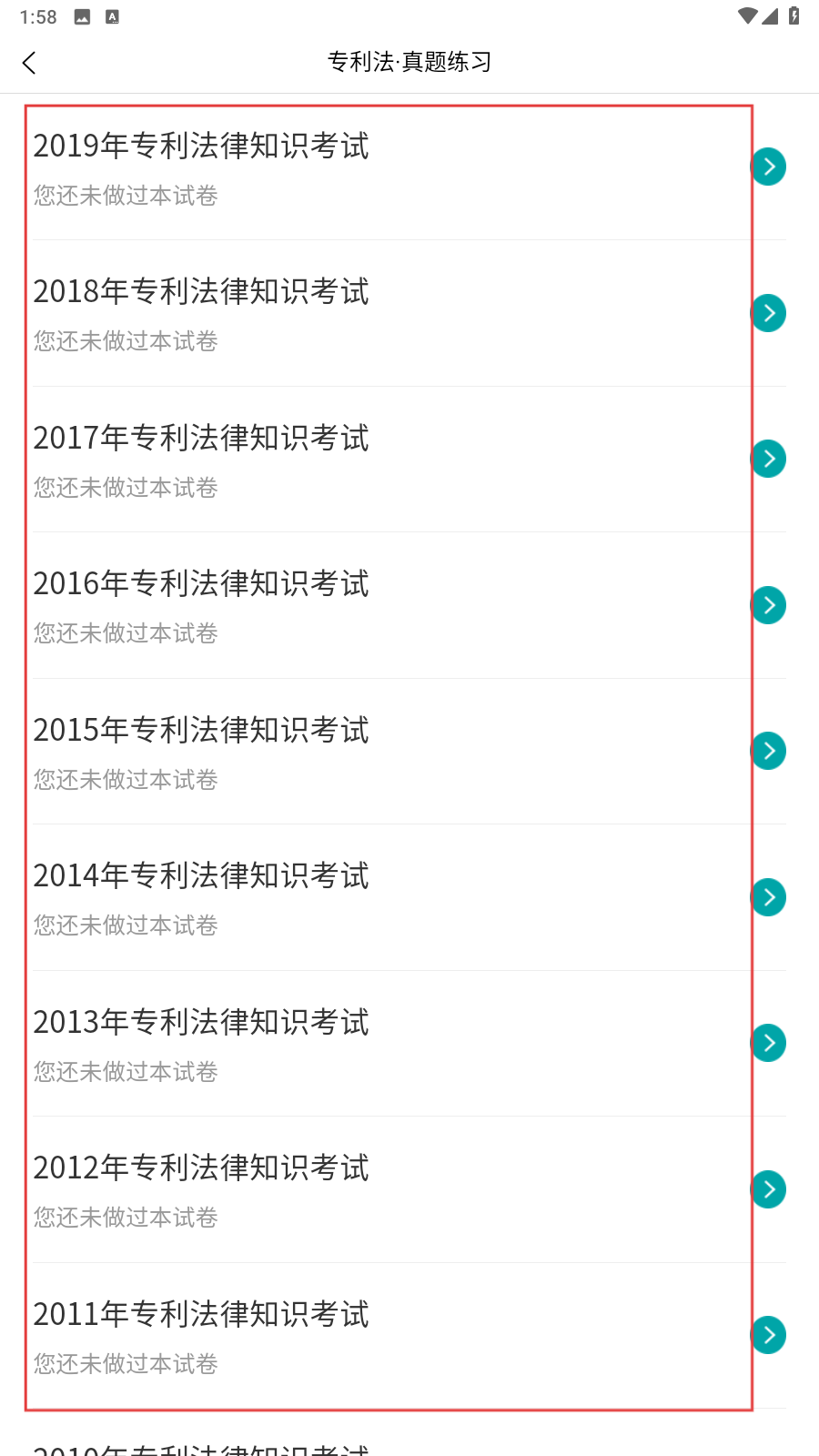 3、选择要刷的年份的真题试卷即可。